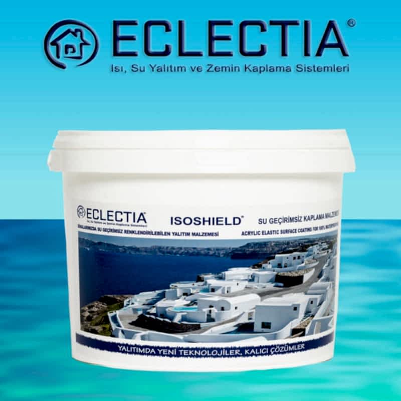 Eclectia İsoshield Uzun Ömürlü, Uv Dayanımlı, Renklendirilebilen dış cephede su geçirimsiz yeni nesil teknolojilerle üretilmiş bir su yalıtım malzemesidir.