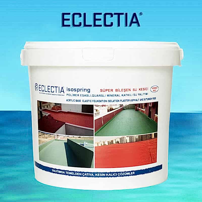 Eclectia İsospring Su Kesici, Tek Bileşenli, Akrilik Esaslı, Uv Dayanımlı, Elastik ve Yeni Nesil Teknolojilerle Üretilen ve Sınıfında Tercih Edilen Su Yalıtım Ürünüdür.